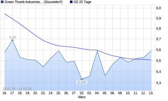 Mit dem Anstieg auf 5,64 EUR hat die Green Thumb Industries-Aktie am 13.03.2026 die 20-Tage-Linie nach oben gekreuzt.
