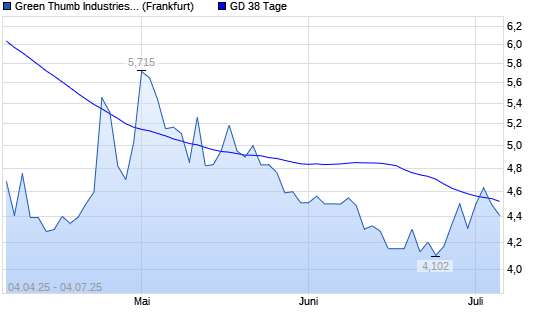 Mit dem Anstieg auf 4,62 EUR hat die Green Thumb Industries-Aktie am 03.07.2025 die 38-Tage-Linie nach oben gekreuzt.
