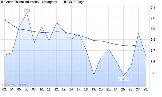 Mit dem Rücksetzer auf 6,65 EUR hat die Green Thumb Industries-Aktie am 28.02.2025 die 20-Tage-Linie nach unten gekreuzt.