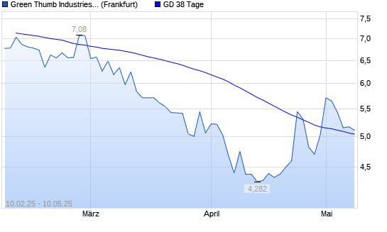 Mit dem Rücksetzer auf 4,89 EUR hat die Green Thumb Industries-Aktie am 09.05.2025 die 38-Tage-Linie nach unten gekreuzt.