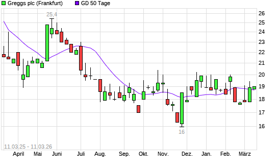 Mit dem Anstieg auf 19,40 EUR hat die Greggs-Aktie am 10.03.2026 die 50-Tage-Linie nach oben gekreuzt.