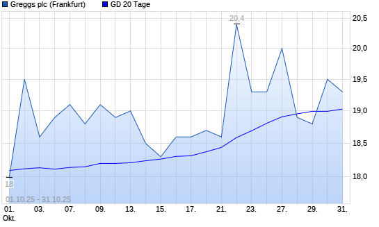 Mit dem Rücksetzer auf 19,20 EUR hat die Greggs-Aktie am 30.10.2025 die 20-Tage-Linie nach unten gekreuzt.