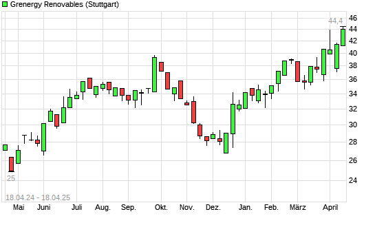 Mit dem Anstieg auf 44,00 EUR hat die Grenergy Renovables-Aktie (ISIN ES0105079000) am 17.04.2025 ein neues All-Time-High erreicht und damit den Kurs vom 16.04.2025 eingestellt.