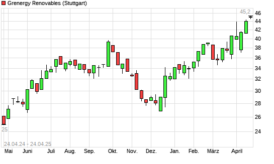 Mit dem Anstieg auf 45,20 EUR hat die Grenergy Renovables-Aktie (ISIN ES0105079000) am 23.04.2025 ein neues All-Time-High erreicht und damit den Kurs vom 22.04.2025 eingestellt.