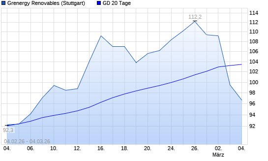 Mit dem Rücksetzer auf 99,50 EUR hat die Grenergy Renovables-Aktie am 03.03.2026 die 20-Tage-Linie nach unten gekreuzt.