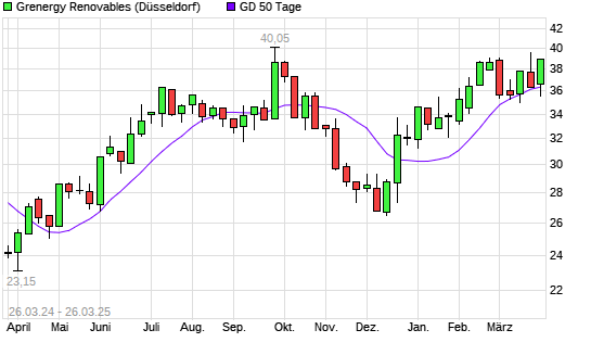 Mit dem Rücksetzer auf 35,80 EUR hat die Grenergy Renovables-Aktie am 25.03.2025 die 50-Tage-Linie nach unten gekreuzt.