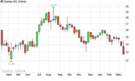 Mit dem Rücksetzer auf 13,18 EUR hat die Grenke-Aktie (ISIN DE000A161N30) am 12.03.2026 ein neues 6-Monats-Tief erreicht und damit den Kurs vom 19.11.2025 eingestellt.