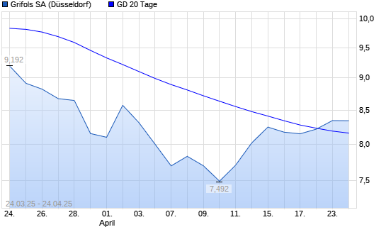 Mit dem Anstieg auf 8,46 EUR hat die Grifols-Aktie am 23.04.2025 die 20-Tage-Linie nach oben gekreuzt.