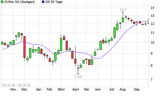 Mit dem Anstieg auf 12,34 EUR hat die Grifols-Aktie am 02.10.2025 die 50-Tage-Linie nach oben gekreuzt.