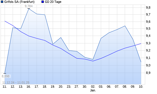 Mit dem Rücksetzer auf 9,04 EUR hat die Grifols-Aktie am 10.01.2025 die 20-Tage-Linie nach unten gekreuzt.