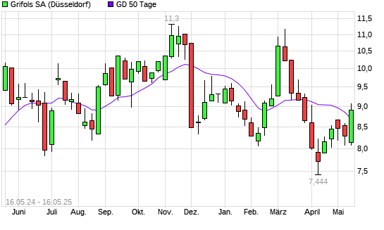 Mit dem Rücksetzer auf 8,56 EUR hat die Grifols-Aktie am 15.05.2025 die 50-Tage-Linie nach unten gekreuzt.