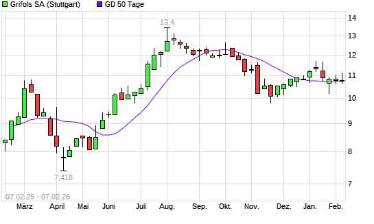 Mit dem Rücksetzer auf 10,68 EUR hat die Grifols-Aktie am 06.02.2026 die 50-Tage-Linie nach unten gekreuzt.