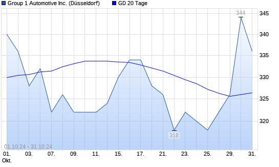 Mit dem Anstieg auf 328,00 EUR hat die Group 1 Automotive-Aktie am 30.10.2024 die 20-Tage-Linie nach oben gekreuzt.