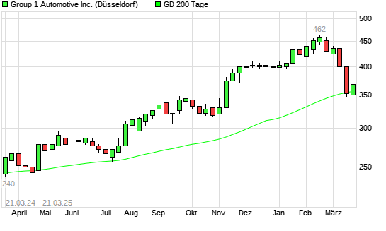 Mit dem Anstieg auf 366,00 EUR hat die Group 1 Automotive-Aktie am 20.03.2025 die 200-Tage-Linie nach oben gekreuzt.