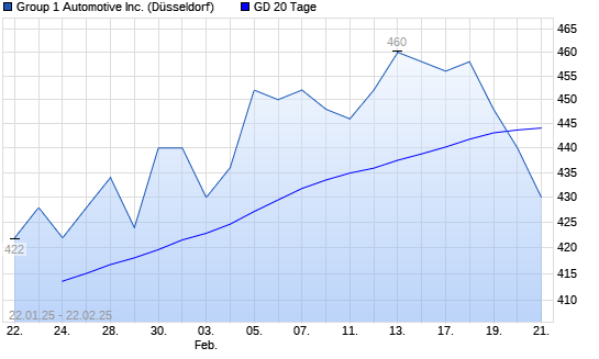 Mit dem Rücksetzer auf 444,00 EUR hat die Group 1 Automotive-Aktie am 21.02.2025 die 20-Tage-Linie nach unten gekreuzt.