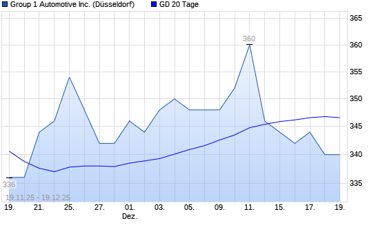 Mit dem Rücksetzer auf 344,00 EUR hat die Group 1 Automotive-Aktie am 18.12.2025 die 20-Tage-Linie nach unten gekreuzt.