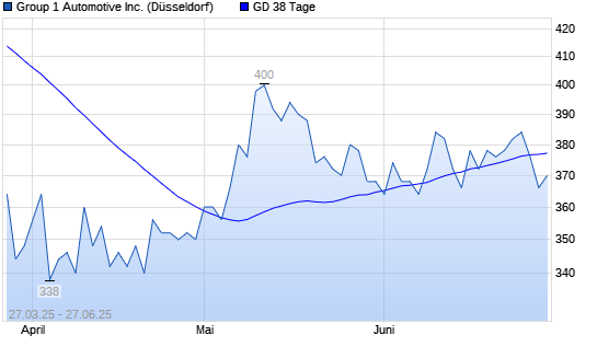 Mit dem Rücksetzer auf 376,00 EUR hat die Group 1 Automotive-Aktie am 26.06.2025 die 38-Tage-Linie nach unten gekreuzt.