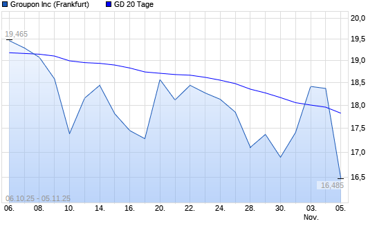 Mit dem Anstieg auf 18,40 EUR hat die Groupon-Aktie am 04.11.2025 die 20-Tage-Linie nach oben gekreuzt.