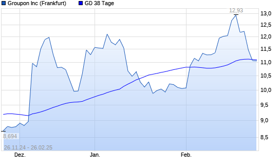 Mit dem Rücksetzer auf 11,01 EUR hat die Groupon-Aktie am 25.02.2025 die 38-Tage-Linie nach unten gekreuzt.