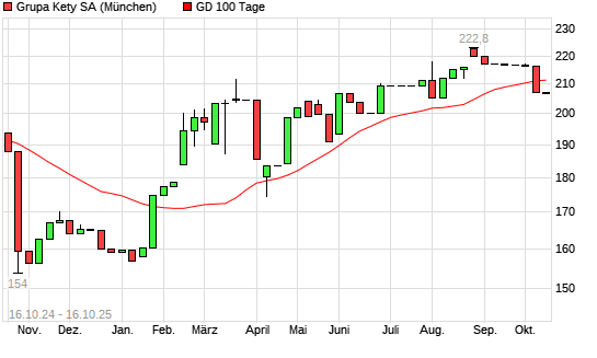 Mit dem Anstieg auf 211,20 EUR hat die Grupa Kety SA-Aktie am 15.10.2025 die 100-Tage-Linie nach oben gekreuzt.
