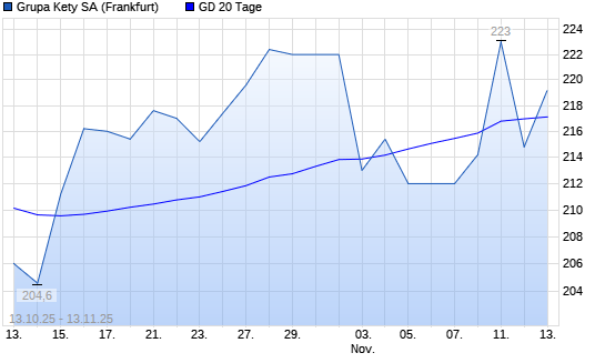 Mit dem Rücksetzer auf 214,80 EUR hat die Grupa Kety SA-Aktie am 12.11.2025 die 20-Tage-Linie nach unten gekreuzt.