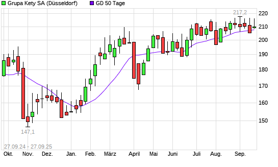 Mit dem Rücksetzer auf 209,20 EUR hat die Grupa Kety SA-Aktie am 26.09.2025 die 50-Tage-Linie nach unten gekreuzt.