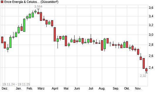Mit dem Rücksetzer auf 2,30 EUR hat die Grupo Empresarial Ence-Aktie (ISIN ES0130625512) am 18.11.2025 ein neues 3-Jahres-Tief erreicht und damit den Kurs vom 17.11.2025 eingestellt.