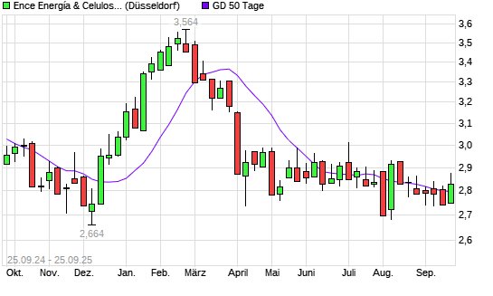Mit dem Anstieg auf 2,80 EUR hat die Grupo Empresarial Ence-Aktie am 24.09.2025 die 50-Tage-Linie nach oben gekreuzt.