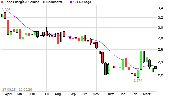 Mit dem Anstieg auf 2,34 EUR hat die Grupo Empresarial Ence-Aktie am 16.03.2026 die 50-Tage-Linie nach oben gekreuzt.