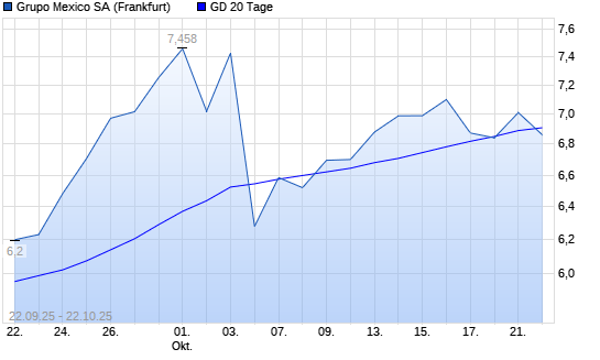 Mit dem Anstieg auf 7,01 EUR hat die Grupo Mexico-Aktie am 21.10.2025 die 20-Tage-Linie nach oben gekreuzt.
