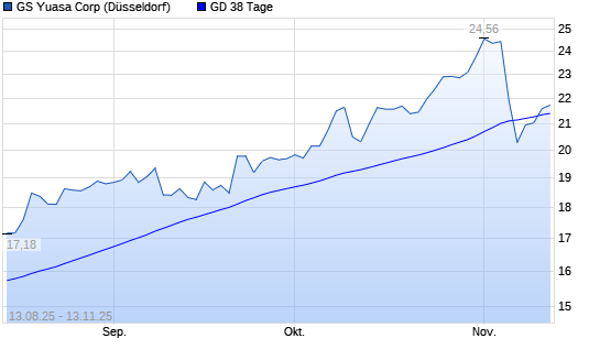 Mit dem Anstieg auf 21,60 EUR hat die Gs Yuasa-Aktie am 12.11.2025 die 38-Tage-Linie nach oben gekreuzt.