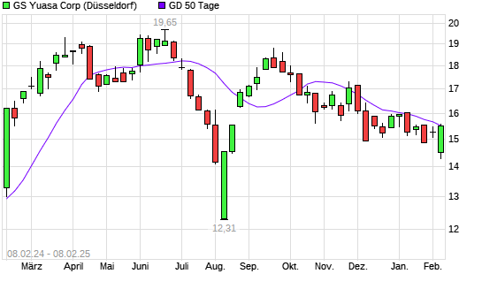 Mit dem Anstieg auf 15,46 EUR hat die Gs Yuasa-Aktie am 07.02.2025 die 50-Tage-Linie nach oben gekreuzt.