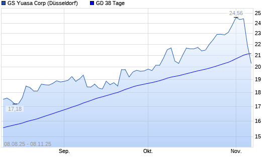 Mit dem Rücksetzer auf 20,94 EUR hat die Gs Yuasa-Aktie am 07.11.2025 die 38-Tage-Linie nach unten gekreuzt.