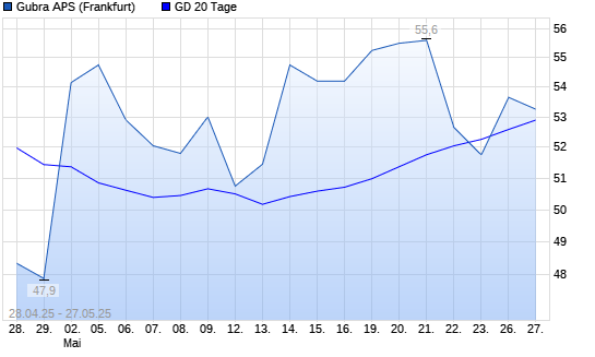 Mit dem Anstieg auf 53,65 EUR hat die Gubra-Aktie am 26.05.2025 die 20-Tage-Linie nach oben gekreuzt.