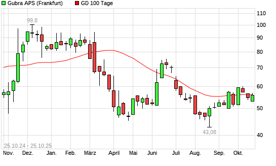 Mit dem Rücksetzer auf 55,75 EUR hat die Gubra-Aktie am 24.10.2025 die 100-Tage-Linie nach unten gekreuzt.