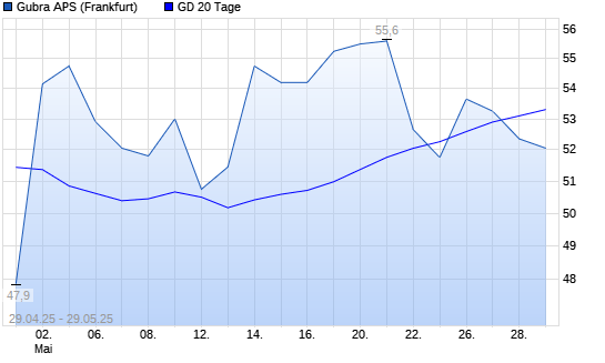 Mit dem Rücksetzer auf 52,35 EUR hat die Gubra-Aktie am 28.05.2025 die 20-Tage-Linie nach unten gekreuzt.