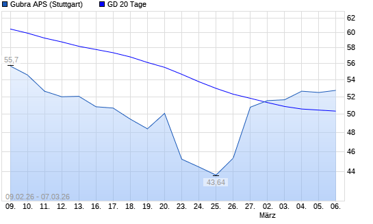 Mit dem Rücksetzer auf 49,06 EUR hat die Gubra-Aktie am 06.03.2026 die 20-Tage-Linie nach unten gekreuzt.