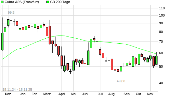 Mit dem Rücksetzer auf 57,85 EUR hat die Gubra-Aktie am 14.11.2025 die 200-Tage-Linie nach unten gekreuzt.