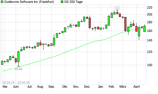 Mit dem Rücksetzer auf 164,95 EUR hat die Guidewire Software-Aktie am 22.04.2025 die 200-Tage-Linie nach unten gekreuzt.
