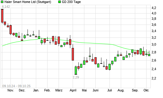 Mit dem Anstieg auf 2,84 EUR hat die HAIER SMART HOME H-Aktie am 08.10.2025 die 200-Tage-Linie nach oben gekreuzt.
