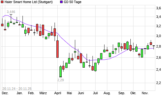 Mit dem Anstieg auf 2,77 EUR hat die HAIER SMART HOME H-Aktie am 19.11.2025 die 50-Tage-Linie nach oben gekreuzt.