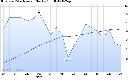 Mit dem Rücksetzer auf 21,60 EUR hat die HARMONIC DRIVE-Aktie am 19.03.2026 die 20-Tage-Linie nach unten gekreuzt.