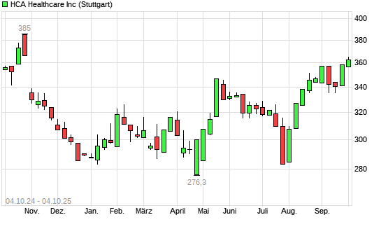 Mit dem Anstieg auf 362,50 EUR hat die HCA Holdings-Aktie (ISIN US40412C1018) am 03.10.2025 ein neues 6-Monats-Hoch erreicht und damit den Kurs vom 02.10.2025 eingestellt.
