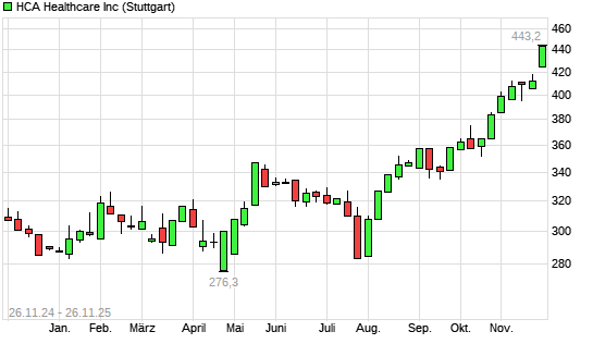 Mit dem Anstieg auf 432,90 EUR hat die HCA Holdings-Aktie (ISIN US40412C1018) am 25.11.2025 ein neues All-Time-High erreicht und damit den Kurs vom 24.11.2025 eingestellt.