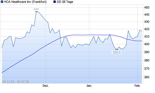 Mit dem Rücksetzer auf 401,00 EUR hat die HCA Holdings-Aktie am 03.02.2026 die 38-Tage-Linie nach unten gekreuzt.