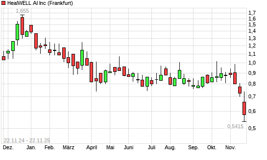 Mit dem Rücksetzer auf 0,58 EUR hat die HEALWELL AI CL.A SUB.VTG-Aktie (ISIN CA42249X1006) am 21.11.2025 ein neues 12-Monats-Tief erreicht und damit den Kurs vom 20.11.2025 eingestellt.