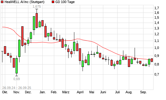Mit dem Rücksetzer auf 0,84 EUR hat die HEALWELL AI CL.A SUB.VTG-Aktie am 25.09.2025 die 100-Tage-Linie nach unten gekreuzt.