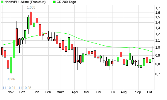 Mit dem Rücksetzer auf 0,86 EUR hat die HEALWELL AI CL.A SUB.VTG-Aktie am 10.10.2025 die 200-Tage-Linie nach unten gekreuzt.