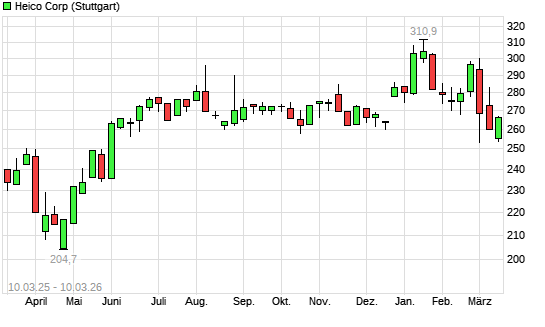 Mit dem Rücksetzer auf 257,80 EUR hat die HEICO-Aktie (ISIN US4228061093) am 09.03.2026 ein neues 6-Monats-Tief erreicht und damit den Kurs vom 17.10.2025 eingestellt.