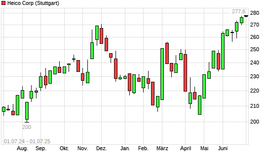 Mit dem Anstieg auf 276,50 EUR hat die HEICO-Aktie (ISIN US4228061093) am 30.06.2025 ein neues All-Time-High erreicht und damit den Kurs vom 25.06.2025 eingestellt.